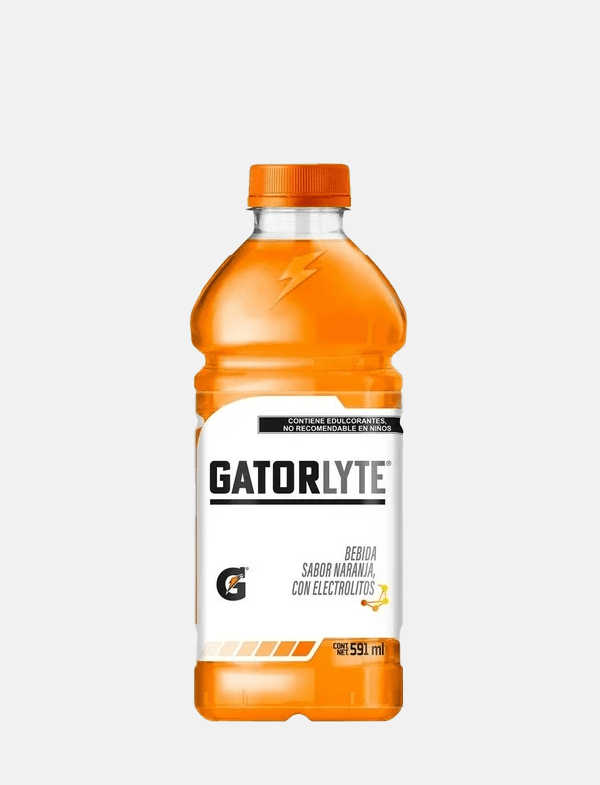 Gatorlyte con electrolitos sabor Naranja 591 ml bebida rehidratante.
