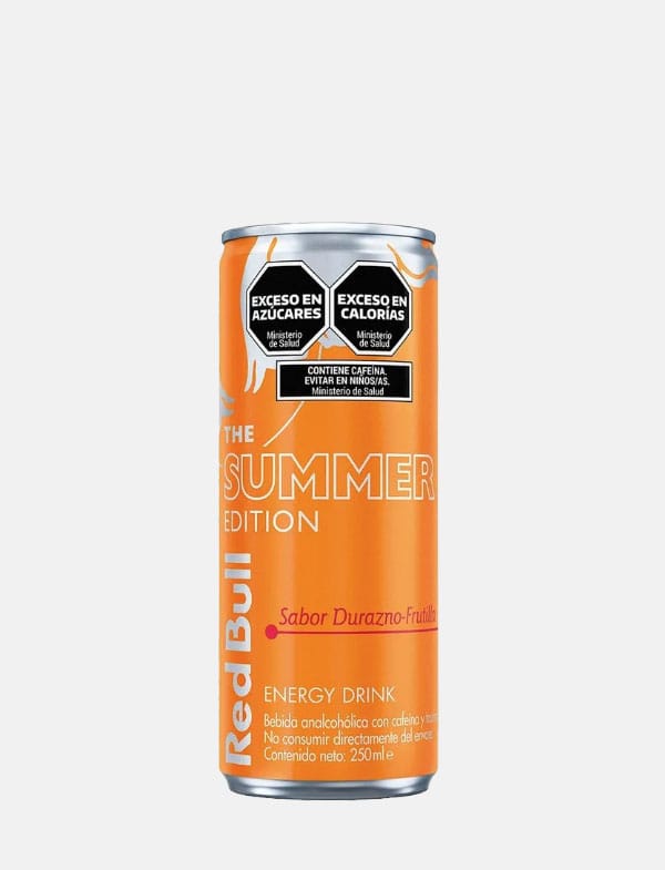 Red Bull Summer edition en una bebida energética ideal para quienes buscan un impulso refrescante con un sabor frutal irresistible. Sabor Durazno Fresa.